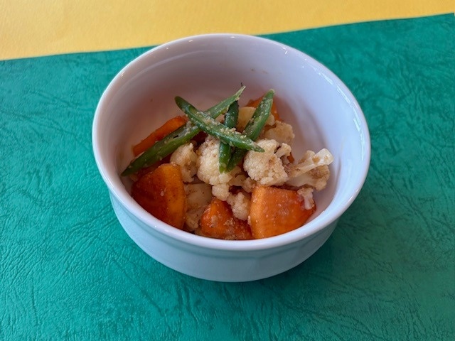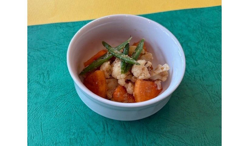 - ごまだれを作り、柿とカリフラワーと和えて出来上がり。