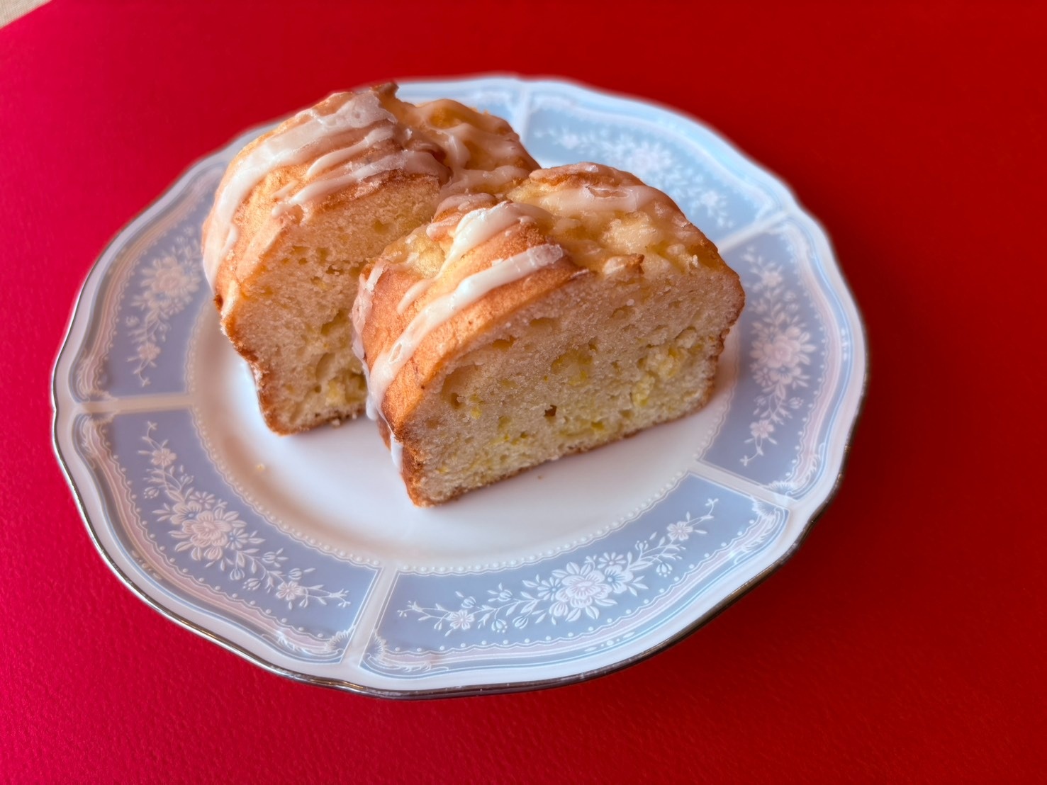 - 甘夏パウンドケーキにアイシングをスプーンでスジ状にかけ乾いたらでき上がりです。