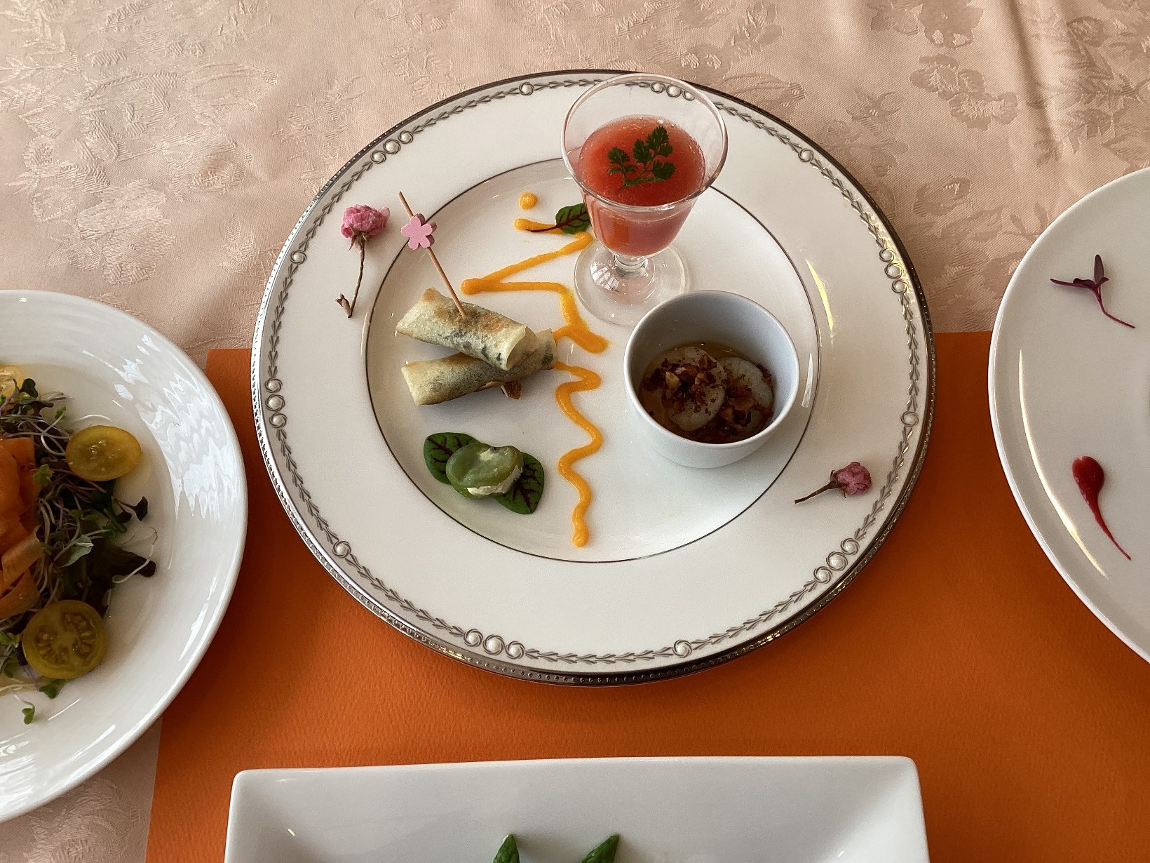 当院のイメージカラーであるオレンジを中心に春の食材を使用した特別ディナーをご用意させていただきました。