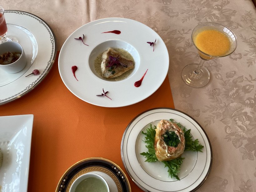 お魚はレンコダイをソテーし、ほんのりクリーミーな白ワインソースとベリーソースをつけてお召し上がりいただきました。