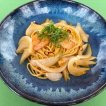炒めた中に調味料を入れひと煮立ちさせて出来上がり。