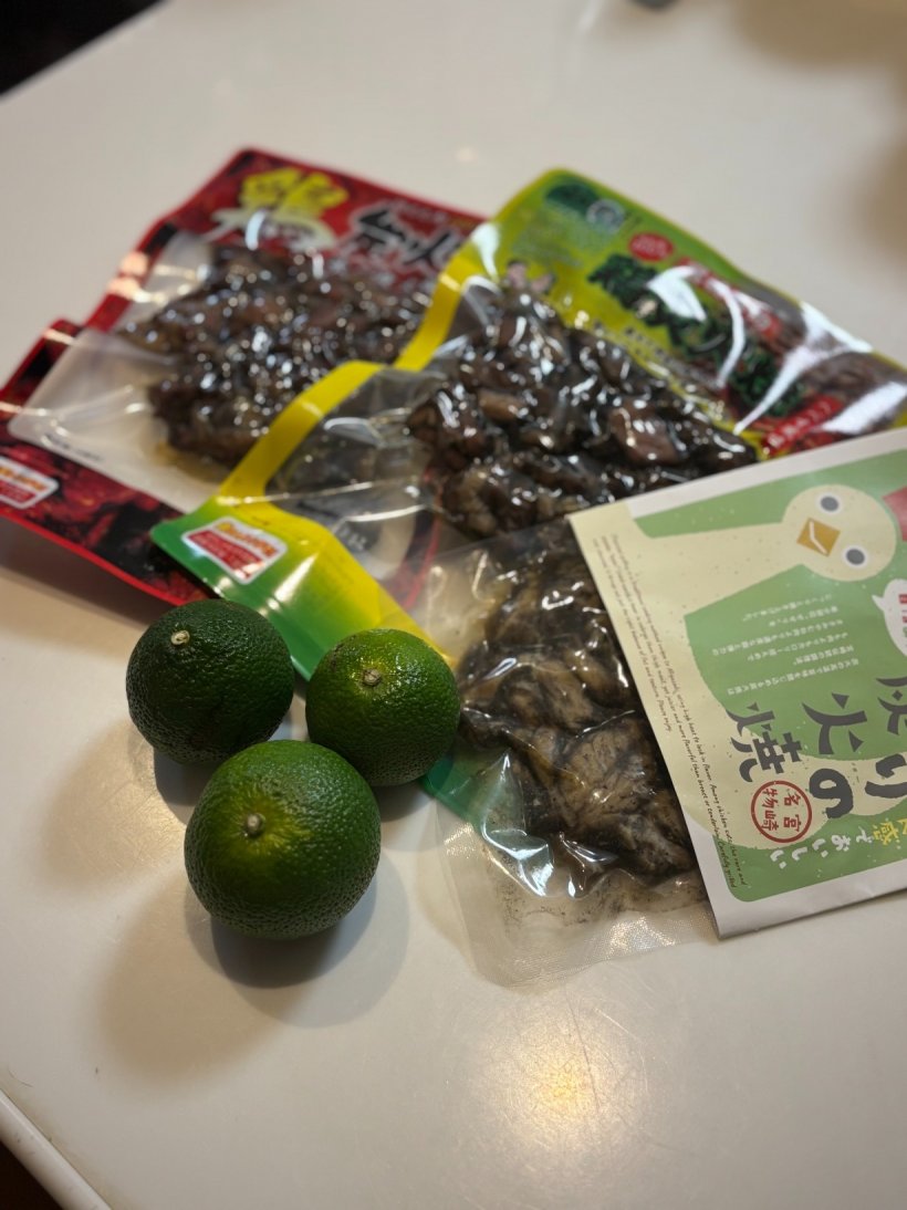 お土産には、延岡名物のヘベスと地鶏の炭火焼きを持ってきてくれて、香りだけで旅気分に。