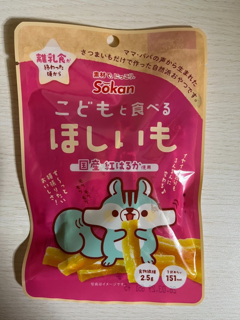 ベビー食品コーナーで見た目も可愛いくて内容もママ、パパの声から生まれた、さつまいもだけで作った自然派オヤツです。